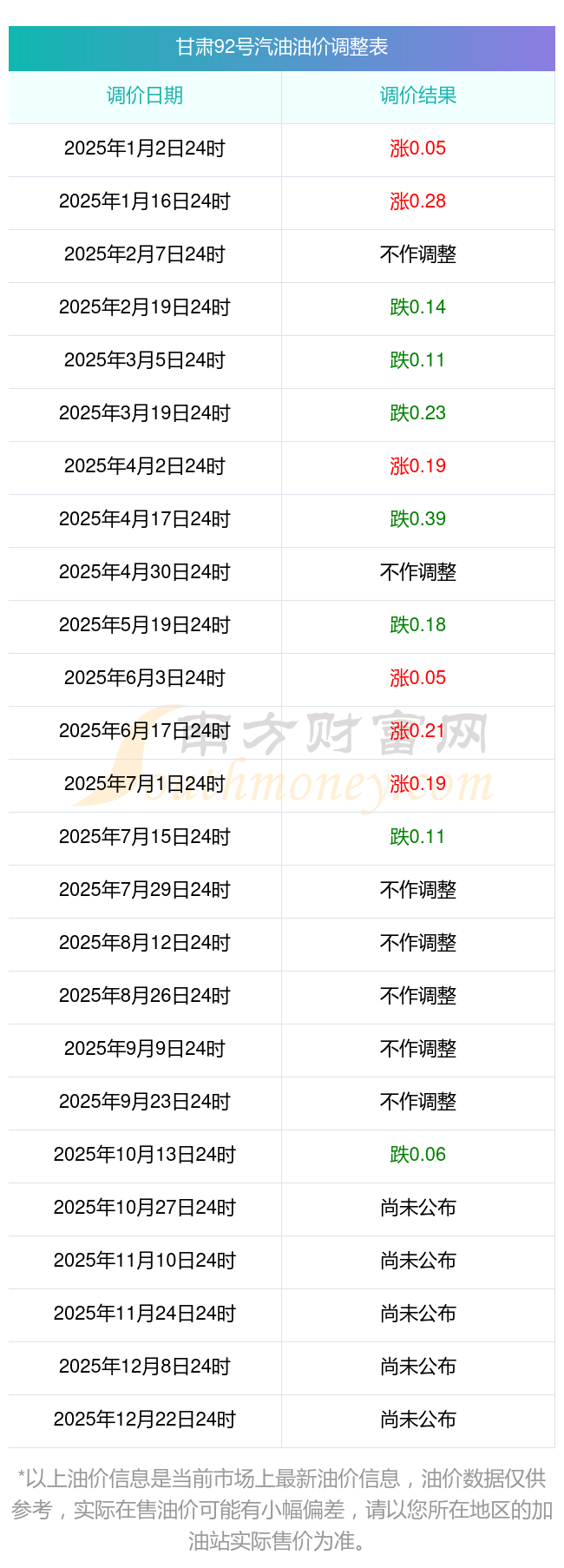 南城区今日油价格表一览(10月25日南城区汽油价格)