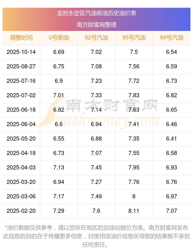 今日油价查询_龙岩永定区汽油柴油价格一览表(10月26日)