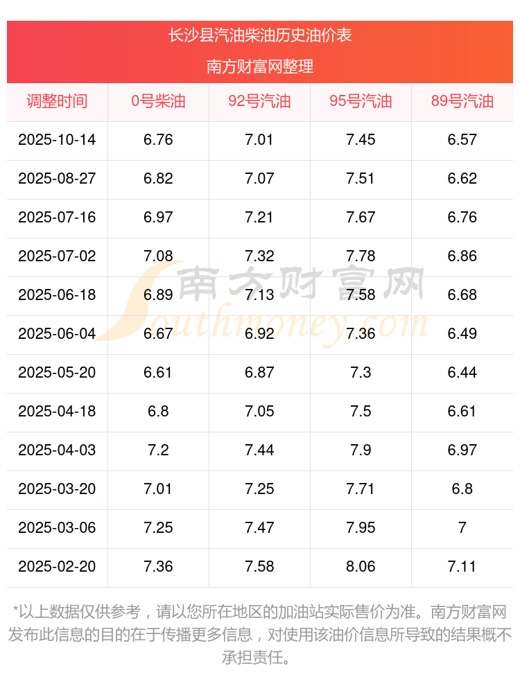 长沙县汽油柴油油价,今日汽油柴油价格查询(10月26日)
