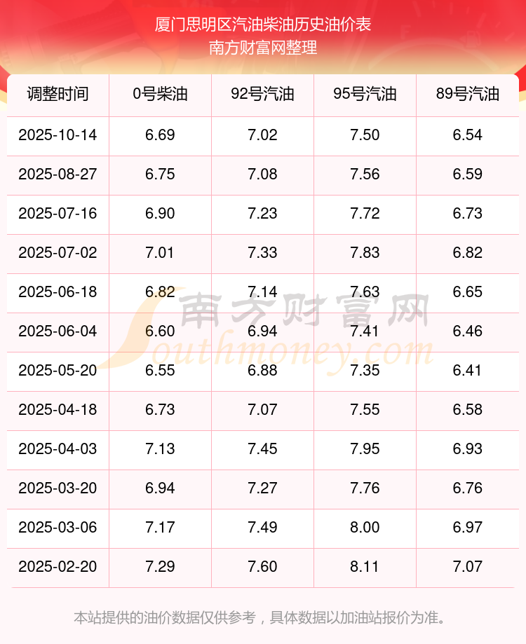 厦门思明区今日油价_10月26日92号、95号汽油价格(多少钱一升)