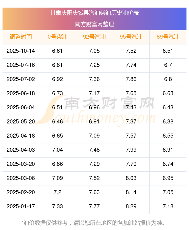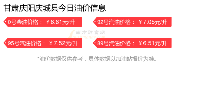 今日甘肃庆阳庆城县油价查询(10月26日92号、95号汽油价格一览)