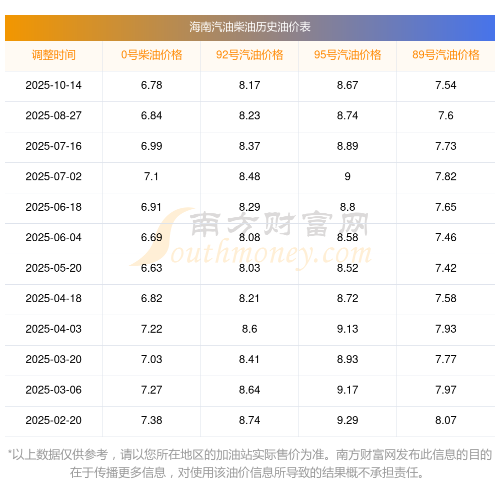海南最新价格(今日油价)