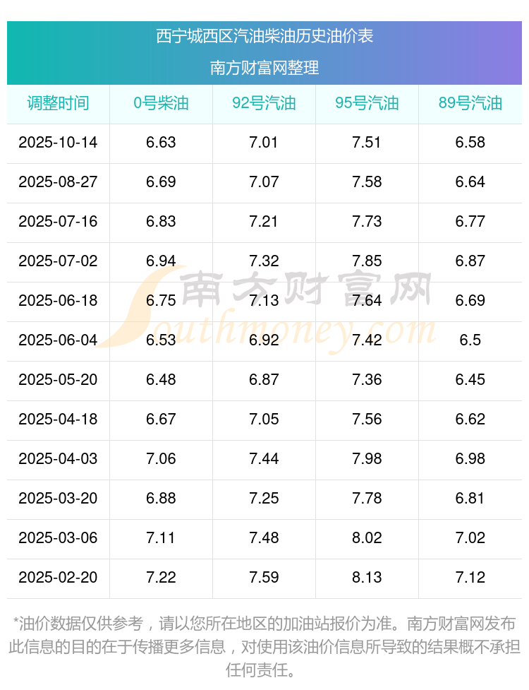 市南区油价今日价格:10月26日汽油价格一览表