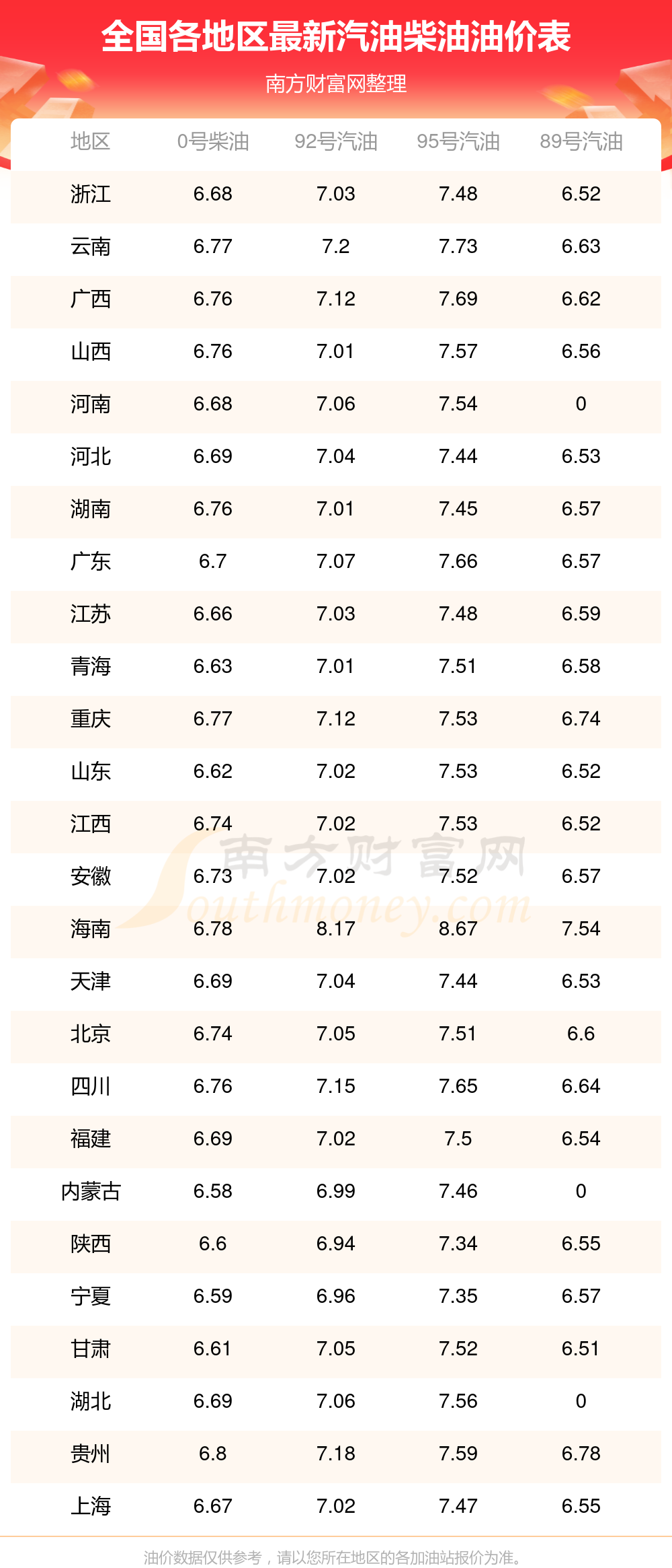 本站提供的油价数据仅供参考,具体数据以加油站报价为准。