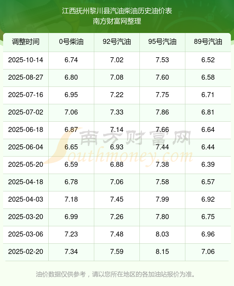 江西抚州黎川县油价查询_10月26日92号、95号汽油价格一览表