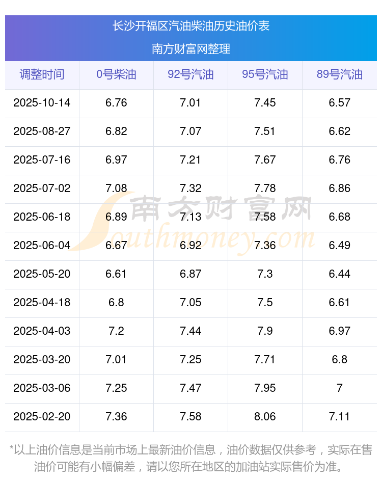 今日长沙开福区汽油价格一览表(10月26日)