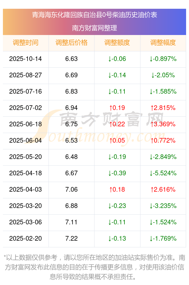 青海海东化隆回族自治县0号柴油今日油价,10月26日多少钱一升