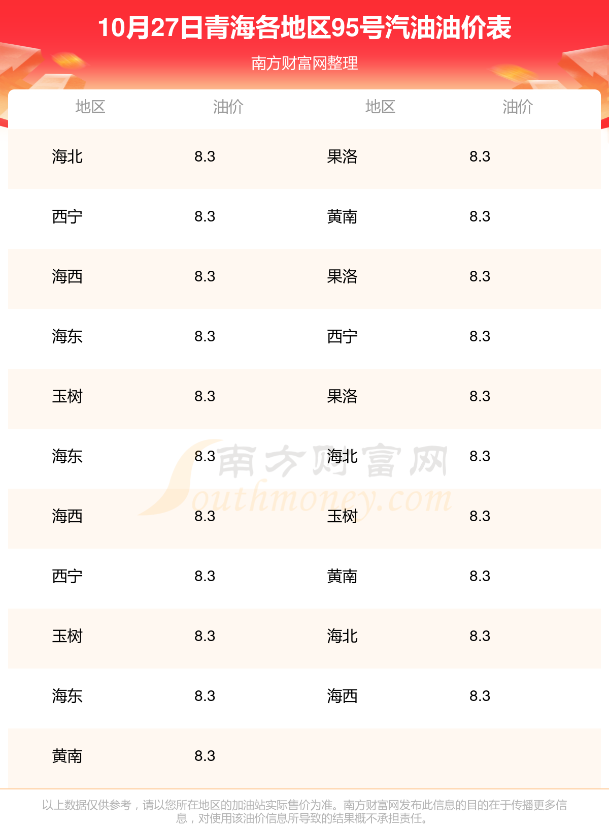 海南区今日油价:10月26日海南区汽油价格查询