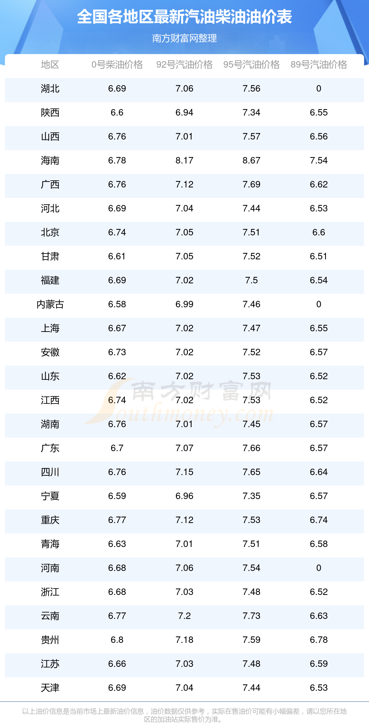本站提供的油价数据仅供参考,具体数据以加油站报价为准。