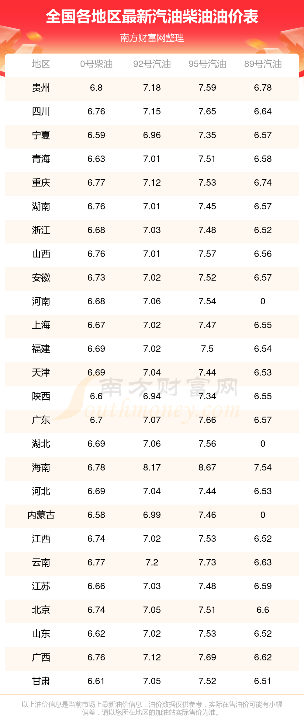 油价数据仅供参考,请以您所在地区的加油站报价为准。油价发布此信息的目的在于传播更多信息,对使用该油价信息所导致的结果概不承担任何责任。