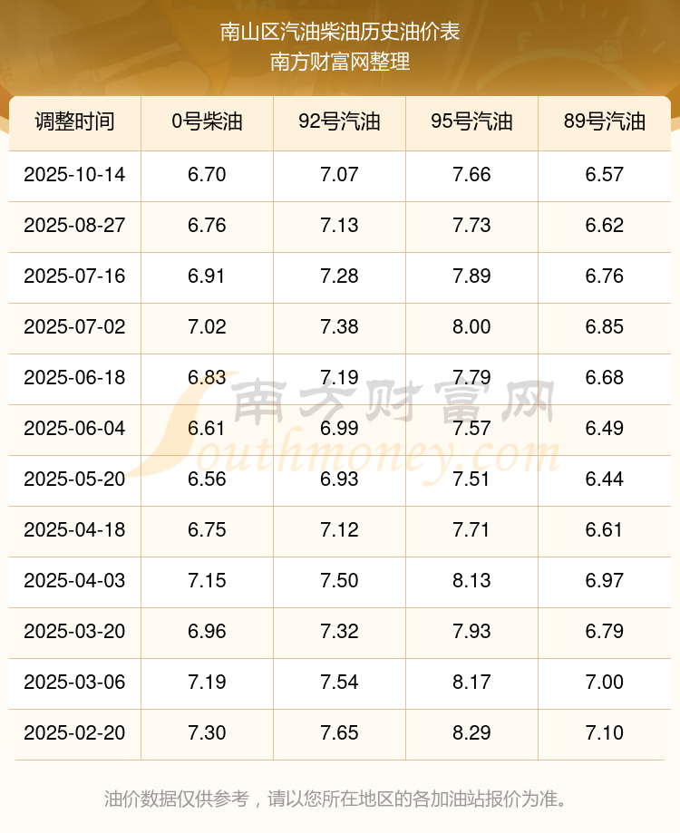 南山区油价今日价格,汽油柴油价格一览表(10月27日)