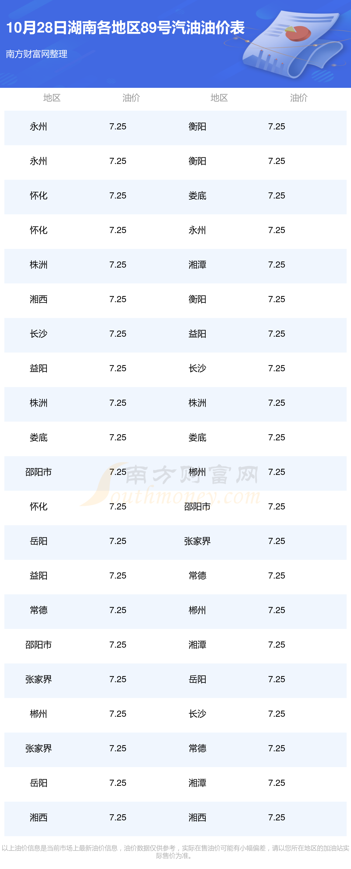 湖南各地区最新89号汽油油价表