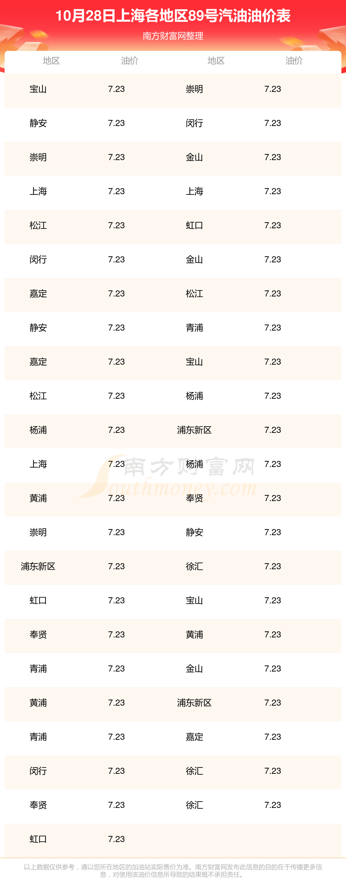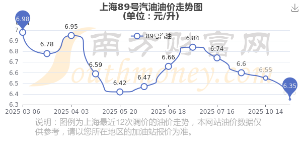 10月28日,上海89号汽油的最新价格为6.35元/升,是10月28日调整后的价格,对比上次油价调整跌了0.2元,跌3.053%。
