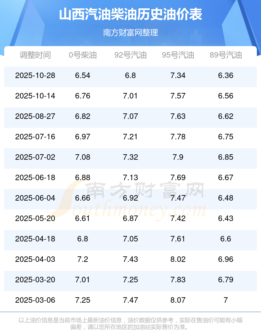 油价数据仅供参考,请以您所在地区的加油站报价为准。油价发布此信息的目的在于传播更多信息,对使用该油价信息所导致的结果概不承担任何责任。