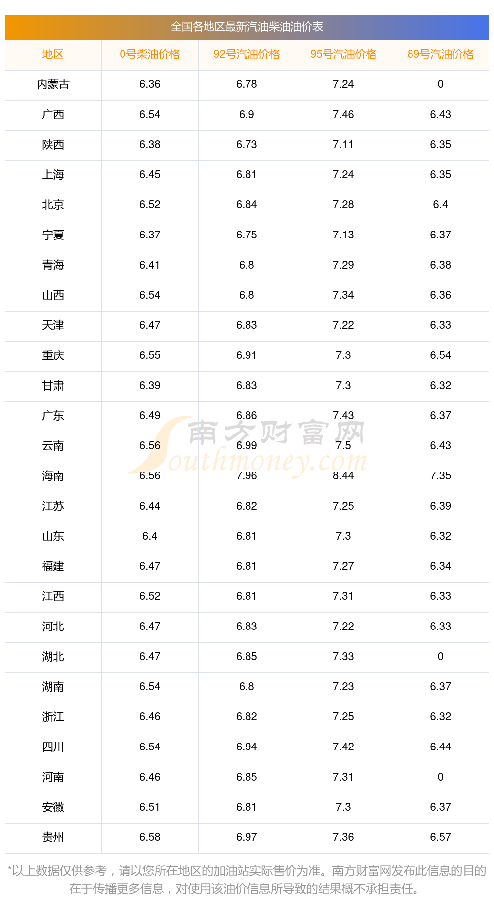 全国各地区汽油价格表10月28日查询