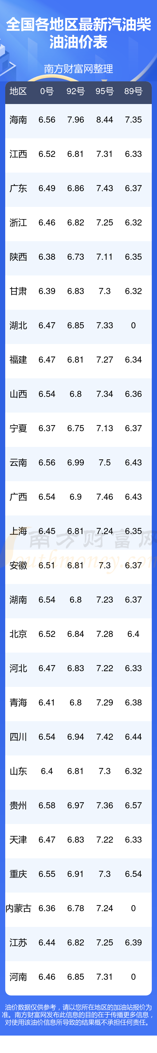 本站提供的油价数据仅供参考,具体数据以加油站报价为准。