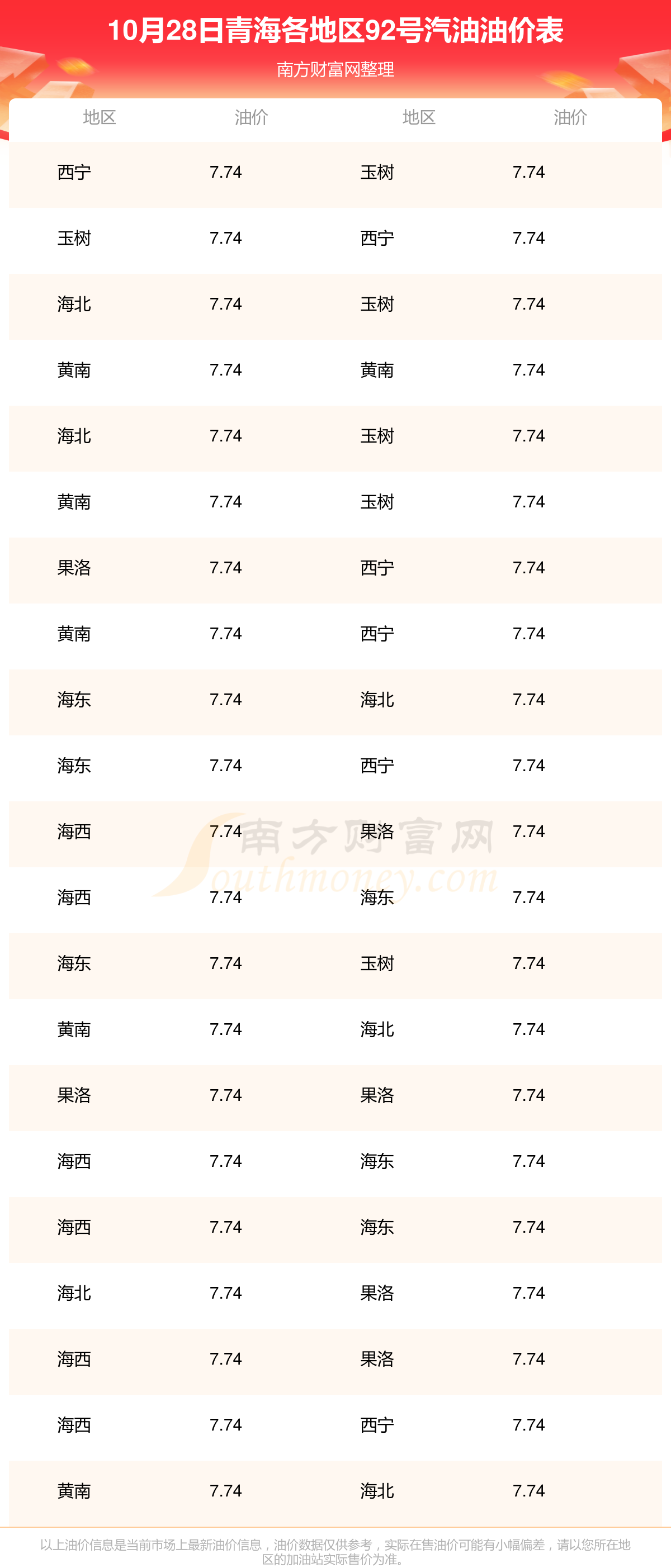江西今日油价-江西92号汽油价格查询(10月28日)