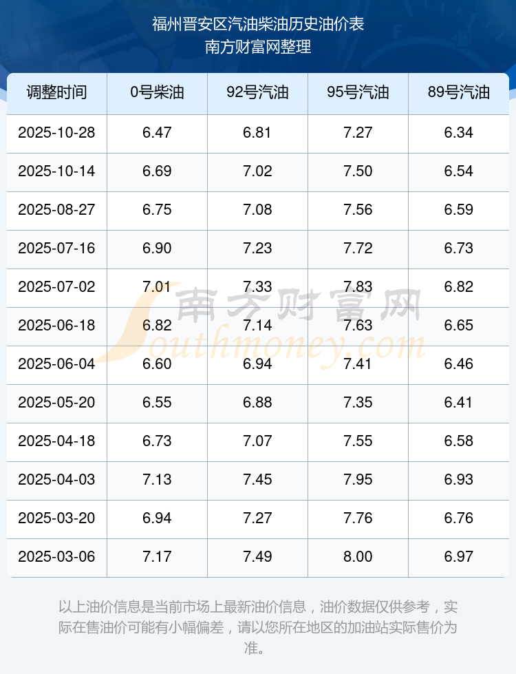 福州晋安区油价_今日福州晋安区汽油价格查询(10月28日)