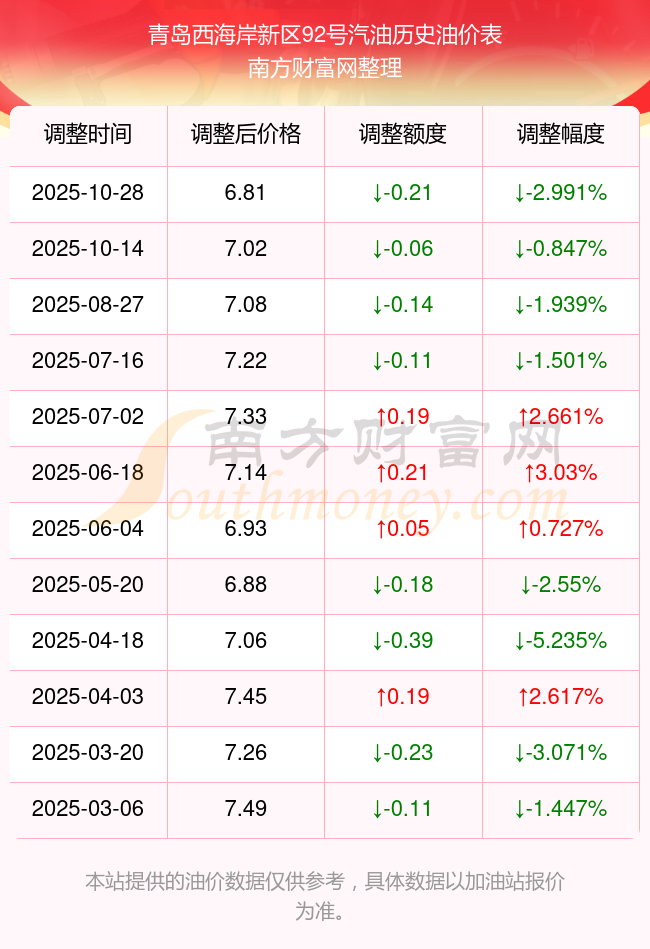 青岛西海岸新区92号汽油今日价格(10月29日92号汽油油价查询)