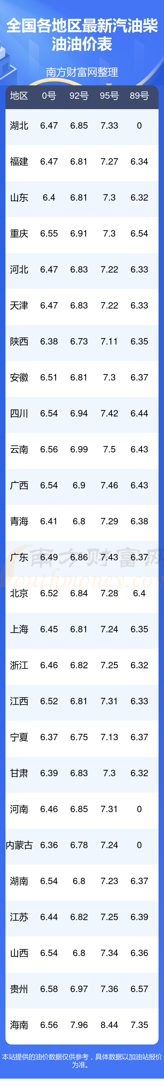 油价数据仅供参考,请以您所在地区的各加油站报价为准。