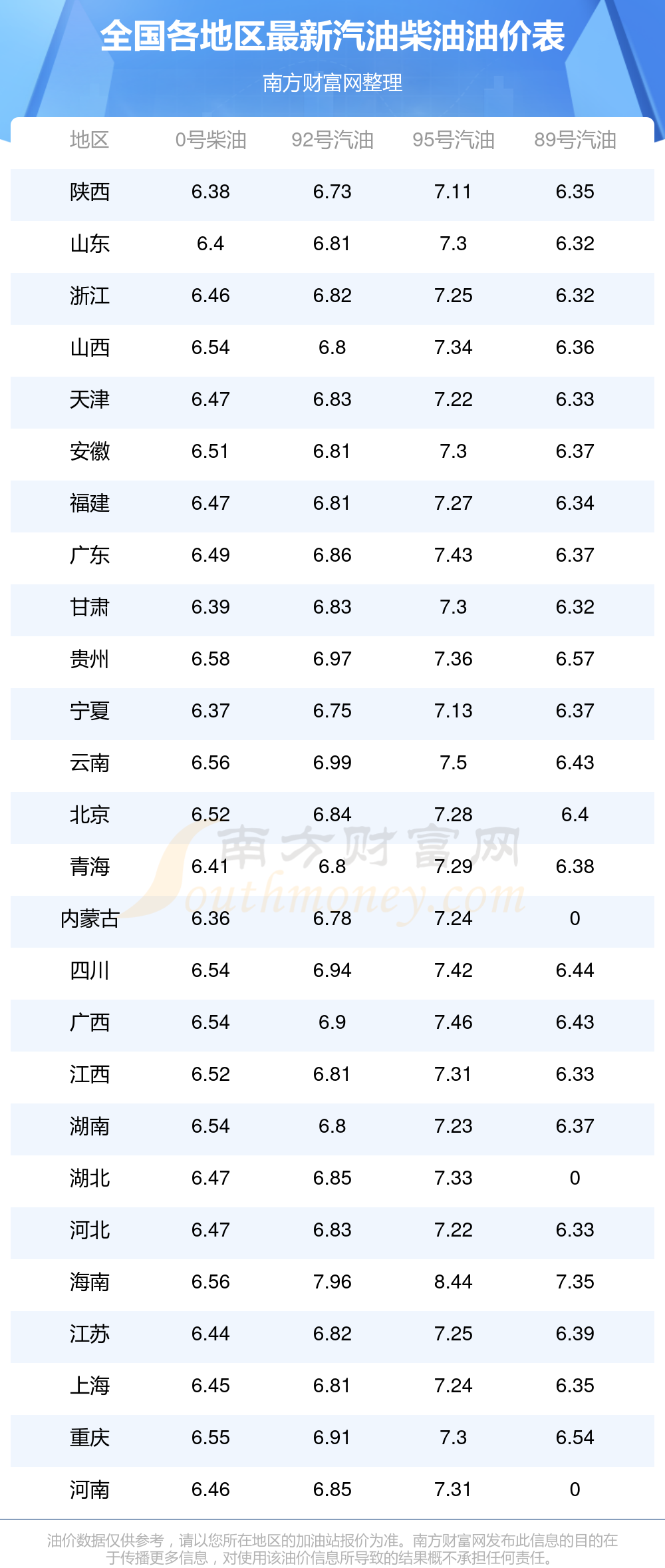 本站提供的油价数据仅供参考,具体数据以加油站报价为准。