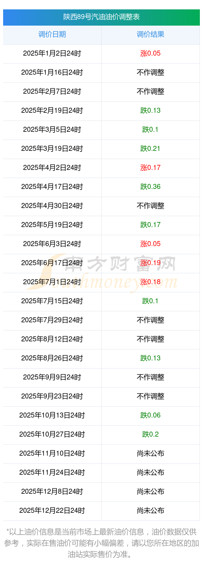 2025年油价调价窗口日期表: