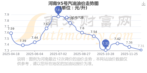 河南95号汽油油价走势图